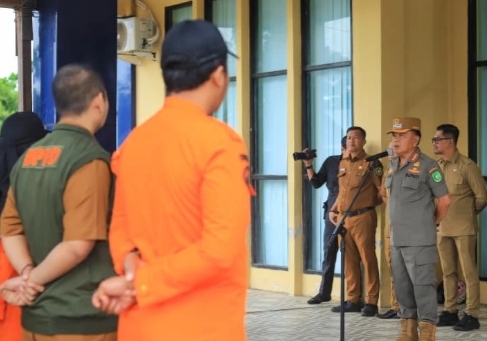 MERANTI--Bupati Kepulauan Meranti AKBP (Purn) H Asmar memimpin apel pengarahan di Badan Penanggulangan Bencana Daerah (BPBD) Kepulauan Meranti, Senin (1/9/2025).